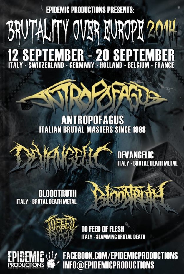 Le leggende del brutal death metal italiano saranno impegnate in un tour europeo tutto italiano con Devangelic, Bloodtruth e To Feed Of Flesh