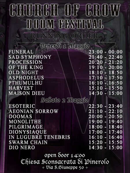 [LIVE] CHURCH OF CROW DOOM FESTIVAL 2026: i dettagli dell’evento di Pinerolo (TO)