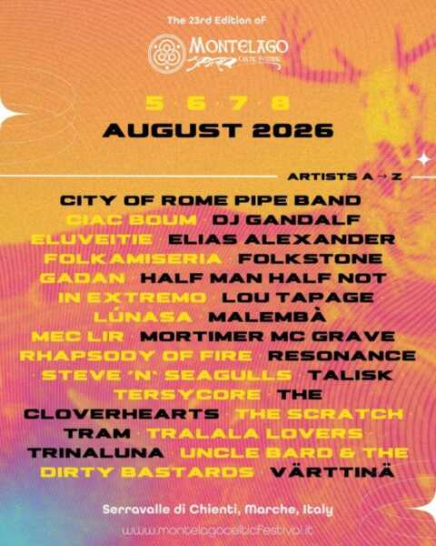Si apre ufficialmente la strada verso Montelago Celtic Festival, in programma dal 5 all’8 agosto 2026 a Taverne di Serravalle di Chienti (MC). A inaugurare il conto alla rovescia è stata l’Early Bird, prima tranche di prevendita dei biglietti, andata sold out in appena due ore. Il 6 aprile sarà la volta della Spring Offer, con altri 4.000 ingressi pronti sia per chi torna, sia per chi partecipa per la prima volta a uno dei pochi festival italiani in stile anglosassone: campeggio libero, musica senza sosta e un’atmosfera unica immersa tra i Monti Sibillini.